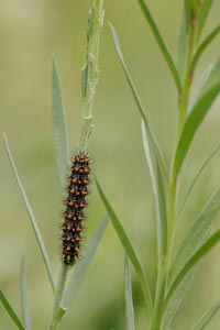 Das Weibchen legt die Eier in Gelegen an Wegerichgewächse wie Leinkraut, Löwenmaul und Fingerhut (Linaria, Chaenorrhinum, Antirrhinum und Digitalis). Die junge Raupe lebt gesellig in einem Gespinst und überwintert halb erwachsen. Nach der Überwinterung vereinzeln sich die Raupen meist, können aber zuweilen auch bis vor der Verpuppung zusammenbleiben.