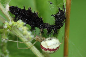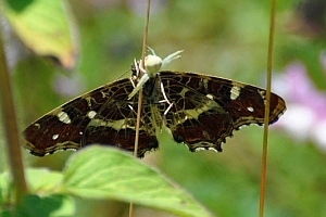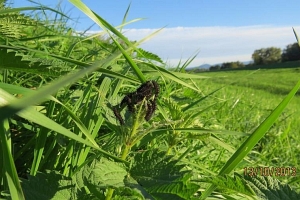 Und was ist mit dem Hopfen? Reinhardt (2007: 177) schreibt: "Fast ausschließlich wird die Große Brennnessel Urtica dioica als Raupennahrung angenommen, im Osten wohl auch Urtica kioviensis (?). Nach Fiedler & Ruf (2003) nehmen die Raupen keinen Hopfen als Nahrung an. Dagegen fand Stöckel (Reinhardt et al. 2007) 3 Raupen an wildem Hopfen (Humulus lupulus) und zog sie damit bis zur Verpuppung." Bei Reinhardt et al. (2007: 413) heißt es dazu konkret: "Die normale Raupennahrung ist die Große Brennnessel Urtica dioica. Stöckel (in litt. 20.12.1985) hat im August 1985 von Hopfen (Humulus lupulus 3 Raupen geklopft und damit weitergefüttert. Bei Fiedler et al. (2002) wurde Hopfen von den Raupen nicht angenommen." Die umfassenden Ausführungen von Fiedler & Ruf (2002: 265-266) verdienen es, detailliert zitiert zu werden: "In a Russian source (Korshunov & Gorbunov 1995) it is indicated that A. levana 'rarely' feeds on H. lupulus, although no details are recorded there. Despite the negative results obtained by Janz et al. (2001) this stimulated us to again test whether larvae of A. levana might accept that plant at least in captivity. In contrast to Janz et al. who tested each food plant in their study with only five first instar larvae, we at- tempted to obtain larger samples and confronted a wider range of larval stages in no-choice tests with cut young foliage of H. lupulus. The larvae used in the tests originated from the offspring of a number of field-collected mated females of the summer generation that had been sampled in the vicinity of Bayreuth (Northern Bavaria, Germany). Larvae were maintained in closed plastic containers (volume 1000cm3) lined with moist filter paper and kept at room temperature (22-25°C). In no case did we observe any signs of feeding on H. lupulus. This was true for first instars directly hatching from the egg with no prior feeding experience (N>100), as well as for first (N=30), second (N=15) and third instar larvae (N=15) that had been raised previously on U. dioica foliage. All larvae starved to death within 3-5 days. Frequently, the larvae were seen crawling around in the containers off the plant in search for suitable food. Our complete failure to induce feeding by A. levana larvae on H. lupulus indicates that in fact this plant species does not qualify as a food plant." Und was schließen die Autoren daraus? "It is at present impossible to decide where the discrepancy to Korshunov & Gorbunov's record (1995) comes from. It might still be possible that certain Siberian populations of A. levana do have the capacity to feed on H. lupulus. However, it seems remarkable in this respect that in his recent book Gorbunov (2001) no longer mentions any relationship between A. levana and H. lupulus. Hence, for the time being and until any conclusive data can be presented to show the contrary, we suggest to delete Humulus from the hostplant list of Araschnia butterflies, which appear in fact to be family-monophagous on Urticaceae." Und was sind jetzt für neue Schlüsse aus der Beobachtung Stöckels zu ziehen? Schwierig: Stöckel hat die Raupen "geklopft", also nicht nach Fraßspuren an der Pflanze gesucht. Es ist nicht zu erfahren, ob der Hopfen - wie oft - mit Brennnesseln verzahnt dort stand; es klingt sehr danach, dass die Raupen in der Zucht Hopfen als Futter akzeptierten - oder fraßen die Raupen gar nicht mehr und es kam zur Notverpuppung? Für mich klingt es so, als könnten die ausgewachsenen Raupen unter ganz besonderen Umständen doch einmal von Brennnesseln auf Hopfen wechseln - und über diese Umstände wissen wir nichts. Weitere Studien wären hier durchaus erwünscht.