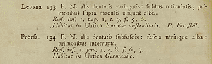 Honey & Scoble (2001: 343): “LSL [The Linnean Society of London, Anm. Red. Lepiforum]: 1 ♀, pinned upside-down, labelled “133 Levana” [by Linnaes]. “Levana 783.” [by Smith], here designated as LECTOTYPE.”