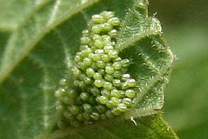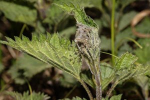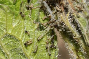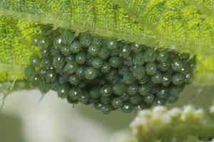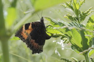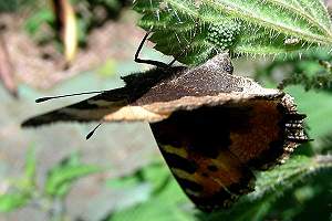 Urtica urens als weitere - in Europa weit verbreitete und noch relativ häufige - Brennnessel wird in der Literatur immer wieder als weitere Nahrungspflanze angeführt, doch ist es mir bisher nicht gelungen, dafür eine Primärquelle ausfindig zu machen; die nur einjährige Pflanze würde vom Standort her gut passen, allerdings dürfte die eher schwächlichen Pflanzen für das Weibchen bei der Eiablage kaum geeignet sein, sich in Ruhe daran zu hängen und Ei für Ei ins Eipaket zu legen; ich vermute daher, dass es sich hier um reine Fütterungspflanzen handelt, die in der Natur nur eine sehr geringe (oder gar keine) Rolle spielen. Andere große Brennnessel-Arten könnte außerhalb Europas durchaus eine Rolle spielen, Urtica subinermis oder Urtica kioviensis stehen in Mitteleuropa aber in aller Regel zu luftfeucht für diesen Falter - und konkrete Angaben zu diesen Pflanzen sind mir auch noch nicht begegnet. Ob es für die bei [HOSTS] aus Russland gelistete Urtica cannabina eine Primärquelle gibt, ist mir unklar.