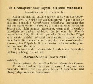 - Erstbeschreibung: Fruhstorfer, H. (1893) Ein hervorragender neuer Tagfalter aus Kaiser-Wilhelmsland. — Entomologische Nachrichten 19 (20): 317-319.