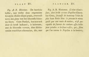 Nur der „Naamwyzer van de dag- en nagt-kapellen“ – im Band 1 der "uitlandsche kapellen" die Seiten 151-155 – ist maßgeblich für das Erscheinungsjahr der Erstbeschreibung, weil dies der einzige binominale Teil des Bandes ist. Nach Hemming (1958: 41) wurden diese Seiten 1776 publiziert.