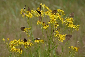 1: Falteransammlung auf Jakobskreuzkraut, Deutschland, Brandenburg, Hennigsdorf bei Berlin, Havelwiesen, Lichtung im Eichenmischwald, 15. Juli 2012 (Freilandfoto: Manuela Semisch), det. Martin SemischForum