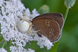 1: Veränderliche Krabbenspinne (Misumena vatia): Deutschland, Sachsen, Hoyerswerda, Wald-Garten-Lage, 114 m, 10. Juli 2011 (Freilandfoto: Martina Görner)Forum