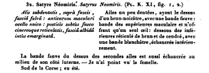 Wiemers et al. (2018) weisen darauf hin, dass die Beschreibung von Godart (1822) nomenklatorisch nicht verfügbar ist, weil sie nur den landessprachlichen Namen »Satyre néomiris« enthält.