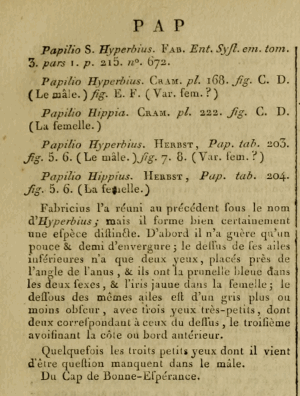 • Erstbeschreibung: Latreille & Godart [1824]: Encyclopédie méthodique. Histoire naturelle. Entomologie, ou histoire naturelle des crustacés, des arachnides et des insectes 9 (2): 329-828. Paris (Agasse).