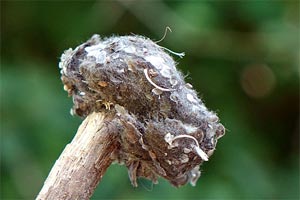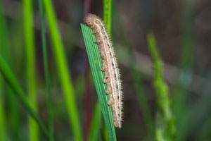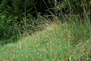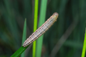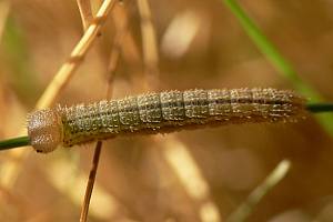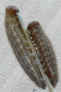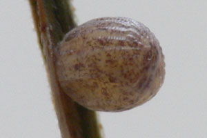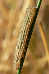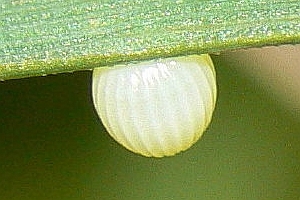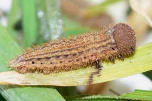 In Baden-Württemberg werden die Eier bevorzugt in saumreiche, teilbeschattete Übergangsbereiche vom Offenland (meist Halbtrockenrasen) zum Wald gelegt. Beobachtet habe ich die Eiablage bisher an Brachypodium pinnatum und Molinia caerulea. Es gibt aber selbst in Baden-Württemberg mit Sicherheit noch weitere Wirtspflanzen (z.B. Brachypodium sylvaticum), da es aethiops-Standorte gibt, an denen diese beiden Pflanzen definitiv fehlen (z.B. in Oberschwaben und auf der Adelegg). Außerdem erfolgt die Eiablage auch häufig nicht an das Wirtsgras, sondern an benachbarte Strukturen (verdorrte Halme anderer Gräser, kleine Stöckchen und Äste, Wacholderbuschzweige...).