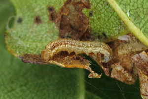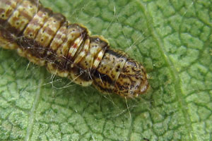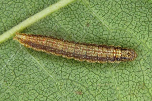 Die Raupe lebt an Laubgehölzen - was die Details betrifft bestand nach der Abtrennung des Taxons C. loxiella zunächst Klärungsbedarf! Leraut (2014) hatte die von ihm selbst (Leraut 2003) zusammengezogenen Arten Cryptoblabes bistriga und Cryptoblabes loxiella wieder auf Artebene getrennt. Dabei nannte er C. bistriga "Cryptoblabe du chêne" und C. loxiella "Cryptoblabe du bouleou". Nach seinen Ausführungen müsste die Raupe von C. bistriga an Eichen (Quercus spp.) und Erlen (Alnus spp.) leben, die von C. loxiella hingegen an Birken (Betula spp.). Hier machte es sich Leraut (2014) sicher viel zu leicht: Eichen und Erlen sind weit weniger miteinander verwandt als Erlen und Birken - eine Art, die an Eichen und Erlen lebt, sollte auch Birken nutzen können, und eine Art, die Birken nutzt, könnte wenigstens ab und zu an Erlen zu finden sein. Ein starker Hinweis darauf, dass sich diese Taxa - zumindest so - nicht trennen lassen!