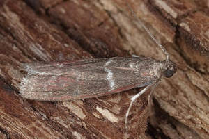 Cryptoblabes bistriga ist eine recht variable Art im Hinblick auf den Kontrast der Zeichnung. Es gibt Falter mit deutlich sichtbaren Zeichnungselementen, aber auch solche, bei denen nur die stets dunkelviolett angehauchten Vorderflügel den Hinweis zur Art geben. [Friedmar Graf]