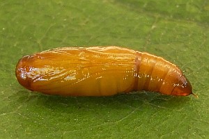 Wahrscheinlich gehört auch die Angabe von Hornig (1853: 73-74) hierher, der zu "Cryptoblabes Rutilella F.R." geschrieben hatte: "Die Raupe ist erwachsen einen Zoll lang, schlank, vorn und rückwärts nur wenig dünner. [...] Die Raupe finde ich im Prater bei Wien an einer einzelnen Stelle, daselbst aber stets in bedeutender Zahl, erwachsen auf dürftigen, mit Staub bedeckten Sträuchern der Erle. (Alnus incana). [...] Die Raupe von Rutilella lebt in einem unregelmäßigen schüttern Gewebe, das zwischen zwei flach zusammengesponnenen Blättern angelegt, oder über welches auch nur ein einzelnes Blatt umgebogen ist. Selten, und dann wohl nur, wenn sie gestochen ist (was aber, nach der Menge der in dem Raupenhause gefundenen Parasiten-Cocons zu urtheilen, häufig der Fall sein muss), finde ich sie frei auf einem Blatte sitzend. Sie ist wenig scheu und lebt gesellig; wo eine ist, kann man sicher sein, in der Nähe auf mehrere zu treffen. [...] Sie frisst die Erlenblätter theils am Rande, theils zwischen den Rippen aus. Die Erziehung gelingt leicht, da die Raupe, durchaus nicht wählig, auch welkende, ja, wie ich mich genau überzeugte, selbst ganz dürre Blätter nicht verschmäht. [...] Die Verpuppung erfolgt Anfangs October."