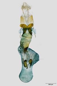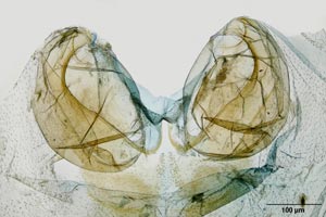 4: ♀, Spanien, Kanarische Inseln, Lanzarote, Haria, Finca La Fuentecilla, Ortsrand, kultivierte Trockensteppe, 340 m, 25. Februar 2020, am Licht (leg., det., präp. & fot.: Hartmuth Strutzberg) [weitere Genitalfotos im Forum]