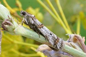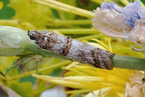 Flügel: A. florella hat deutliche weißliche Aufhellung im Wurzel- und Mittelfeld. Die äußere Querlinie ist deutlich gebogen und erreicht nur mit einer Unterbrechung oder gar nicht den Innenrand. Bei P. compositella dominieren i.d.R. die Grautöne. Es sind nur wenige bis keine weißen Schuppen vorhanden. Die äußere Querlinie ist hier wellenförmig und trifft in einem stumpfen Winkel auf den Innenrand. Beide Arten sind im Aussehen variabel und es gibt helle sowie dunkle Exemplare.