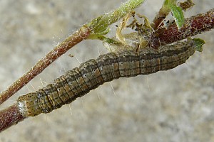 Goury & Guignon (1909: 129) stellen fest, dass es zwar Angaben zur Lebensweise der Raupe gibt, aber noch keine Beschreibung der Raupe selbst: „Brephia compositella … Cette chenille, que nous croyons n'avoir pas encore décrite, vit dans une toile sous la plante nourricière.” Interessanterweise werden die Gattung(en) oder Art(en) der hier betroffenen Zistrosengewächse (Cistaceae) hier nicht benannt.