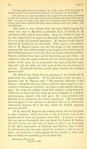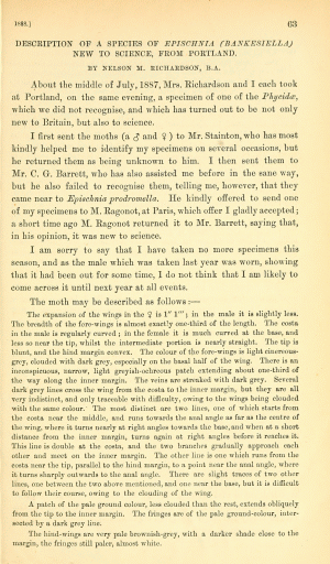- Beschreibung als Epischnia bankesiella: Richardson, N. M. (1888): Description of a species of Epischnia (Bankesiella) new to science, from Portland. — The Entomologist's Monthly Magazine 25: 63-64. London (Gurney & Jackson).