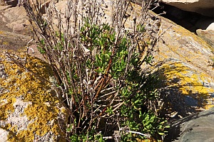2: Salz-Alant (Limbarda crithmoides), eine der Raupennahrungspflanzen, Frankreich, Manche, Les Pieux, 4 m, 13. April 2023 (det. & Foto: Ruben Meert)