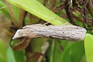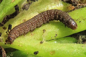 1-4: Frankreich, Manche, Les Pieux, 4 m, Raupe an Salz-Alant (Limbarda crithmoides), 13. April 2023 (det. & Fotos: Ruben Meert)
