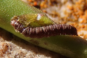 7-9: Frankreich, Manche, Les Pieux, 4 m, leg. Raupe an Salz-Alant (Limbarda crithmoides) 13. April 2023, Falterschlupf 26. Juli 2023 (leg., cult., det. & Fotos: Ruben Meert)
