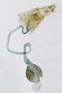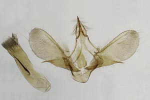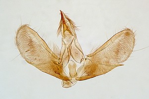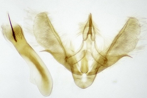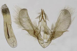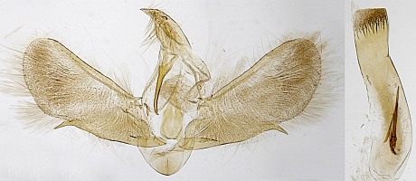 1-2: Präparat eines nicht abgebildeten ♂, , ♀: Österreich, Niederösterreich, Hohe Wand (Ghf. Postl), Felsfluren, Gebüsch, Viehweiden, 900 m, 22. Juni 2005 (Präparation & Foto: Peter Buchner), det. durch GU Peter Buchner Hinweis: Valven und Aedeagus in der kleinen Version im selben Maßstab abgebildet, in der vergrößerten Version ist der Aedeagus stärker vergrößert als die Valven