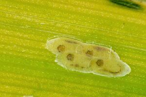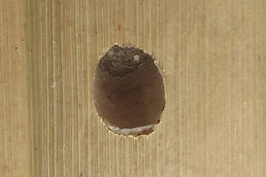 1-2: Belgien, Aalst, 11. Mai 2017, [1] Puppe (Mai 2017) + [2] Exuvie, am Verpuppungsplatz zurückgeblieben (17. Juni 2017) E in totem Stängel von Breitblatt-Rohrkolben (Typha-latifolia) (leg., cult., det. & Fotos Ruben Meert)