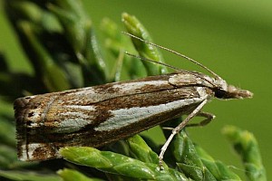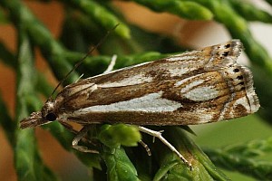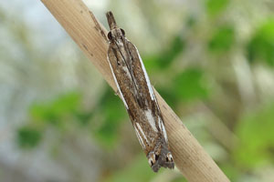 Crambus alienellus konnte ich bis jetzt zweimal finden, jeweils auf Mooren. Die Art lässt sich in den Abendstunden und an trüben Tagen aus der Vegetation scheuchen. [Friedmar Graf]