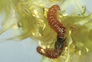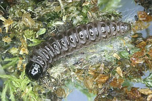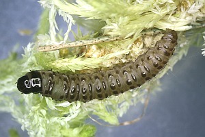 1-5: Großbritannien, Schottland, Banffshire, Ordiquhill, Lichtfang & det. eines ♀ 23. Juli 2016 R. Leverton, Eizucht R. Leverton & R.J. Heckford, Raupenfotos R.J. Heckford: [1] Eiraupen, 10. August 2016, [2] mittleres Stadium, 13. Oktober 2016, [3-4] subadult, 18. Februar 2017, [5] adult, 4. Mai 2017