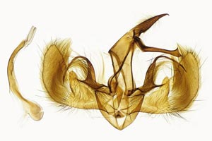 1: ♂, Österreich, Steiermark, Graz, St. Peter, ca. 380 m, Garten, Mischwaldrand, am Licht, 25. Juni 2017 (gen. det., präp. & Foto: Horst Pichler), conf. Peter Buchner und [Genitalpräparat neu fotografiert]Forum