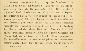 - Erstbeschreibung: Staudinger, O. (1881): Lepidopteren-Fauna Klein-Asien's. — Horae Societatis entomologicae Rossicae 16: 65-135.
