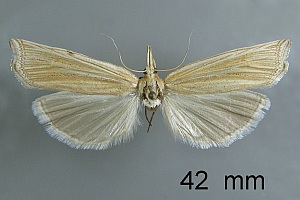 Für diese Interpretation spricht sicher einiges - nur die Tatsache, dass es aus dem Kaiserstuhl und der gesamten Oberrheinebene bisher nur ein belegtes Exemplar gibt, aus dem Schwarzwald hingegen mehr und insbesondere von Lenzkirch auch aus zwei Folgejahren. Nach der Verbreitungskarte von Leraut (2012: 582) reicht das Vorkommen in Frankreich weit nach Norden. Und nach Slamka (2008: 101) besiedelt die Art in Sizilien offenes Grasland bis in 1200 m Höhe. Zudem wird die Art nicht nur im Südural gefunden, sondern dort auch noch etwas nördlicher. Eine Ansiedlung im Hotzenwald ist also nicht ohne weiteres auszuschließen. Aber Slamka (2008: 101) berichtet auch über einen Fund in England: "recorded as immigrant in SE England (1935, 1952)." Auf [ukmoths.org.uk, Stand 8. Oktober 2020] heißt es dazu: "A southern European species, this quite large and distinctive Crambid has only been recorded in Britain on a handful of occasions, all on the Kent or Essex coast."