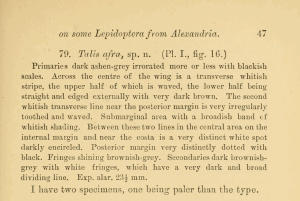 - Erstbeschreibung: Bethune-Baker, G. T. (1894): Notes on some Lepidoptera received from the neighbourhood of Alexandria. — The Transactions of the Entomological Society of London for the Year 1894: 33-51, pl. I.