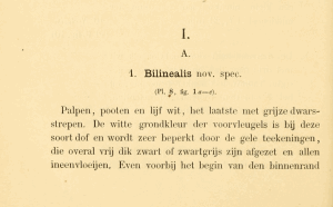- Erstbeschreibung: Snellen, P. C. T. (1876): Over Oligostigma Guenée, een genus der Pyraliden. — Tijdschrift voor Entomologie 19: 186-209, pl. 8-9.