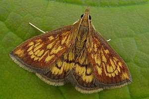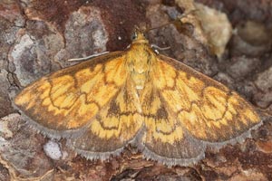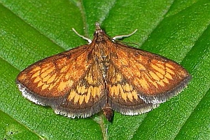 Vergleich Ecpyrrhorrhoe rubiginalis (rechts) mit Anania verbascalis (links)