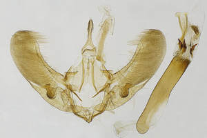 5-6: (5: Exuvie), (6: Überwinterungs- und Verpuppungsgespinst), Deutschland, Sachsen, Doberschütz, Ruderalfläche am Waldrand, Raupe an Schwarznessel (Ballota nigra) 18. August 2009, e.l. 18. April 2010 (Fotos: Heidrun Melzer), leg., cult. & det. Heidrun MelzerForum