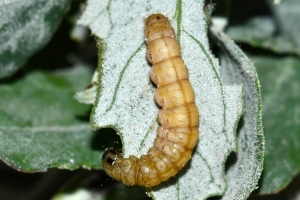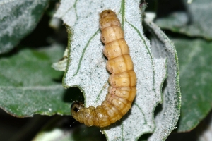 [bladmineerders.nl (abgefragt 15. Oktober 2022)] listen: "Amaranthus hybridus; Atriplex prostrata; Beta; Camphorosma; Chenopodium album; Salsola soda" und notieren: "Larvae among spun leaves." Ob hier wirklich alle Angaben zu Amaranthaceae auf Freiland-Beobachtungen von Raupen oder Eiablagen beruhen, ist unklar - Primärangaben scheint es kaum zu geben.