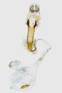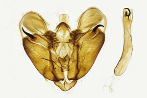 Barrett (1904: 191-192) beschreibt die Raupe und weiß zu berichten: "August till May or the beginning of June, on Centaurea nigra (knapweed); hybernating while small in a tough flat cocoon of rounded outline, formed of closely woven pale Grey silk, and placed upon a fallen leaf. The very young larva spins a Little silken web at the side of the midrib of the Centaurea leaf toward the stem, and eats little holes in the leaves. After hybernation it seems to continue to hide in ist hibernaculum, Spinning short galleries so as to reach the tender leaves, and eating their entire substance."