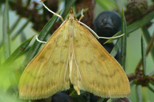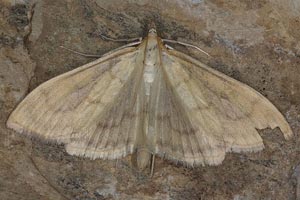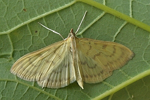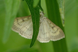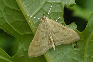 Schütze (1931) liefert dazu das Kontrastprogramm: "Zwischen versponnenen Blättern an Urtica dioica und Urtica urens (Rössler und andere), nach Reutti auch an Verbascum. Alle diese Angaben dürften falsch sein und auf Verwechslung mit Patania ruralis bzw. Paracorsia repandalis beruhen. Das gilt natürlich auch für die schon von Möschler (1861: 36) verbreitete Angabe: "Rpe. zwischen zusammengesponnenen Blättern der Brennnessel."