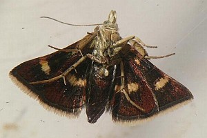 3: geöffnetes Wohngespinst mit Jungraupe, Funddaten wie Bild 2 (leg., cult., det. & Foto: Heidrun Melzer)