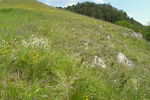 1: Kalk-Gips-Hügellandschaft, Deutschland, Thüringen, Kyffhäuser, Umgebung von Steinthaleben, 200-250 m, 8. Juni 2013 (Foto: Heidrun Melzer)