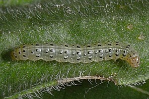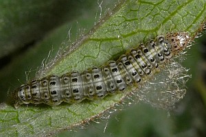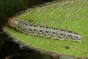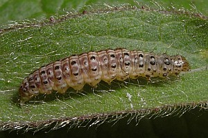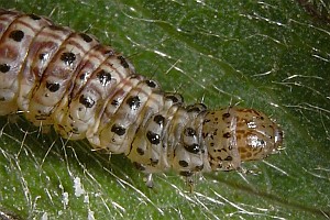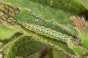 2-4: Deutschland, Baden-Württemberg, Kaiserstuhl, Oberbergen, Raupe am 26. Juni 2010 an Dürrwurz-Alant (Inula conyzae), e.l. 8. Juli 2010 (leg., cult. & Fotos: Gabi Krumm), conf. Rolf MörtterForum