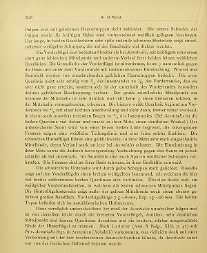 - Erstbeschreibung: Rebel, H. (1903): Studien über die Lepidopterenfauna der Balkanländer. I. Teil. Bulgarien und Ostrumelien. — Annalen des Naturhistorischen Museums in Wien 18: 123-347 + Taf. III.