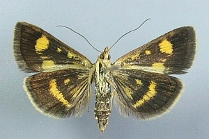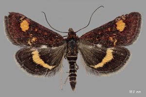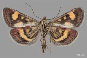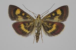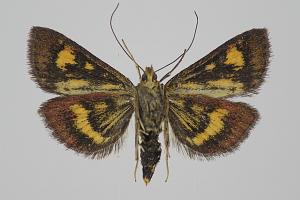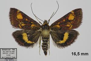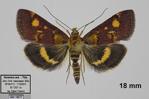 Anmerkung: bis zum 19. Juli 2024 wurde ein Falter aus der Pröse Sammlung irrtümlich bei Pyrausta falcatalis gezeigt [Korrektur].