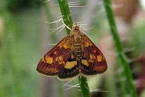 Siehe auch [Gegenüberstellung] von Merkmalen der Vorderflügeloberseite von Pyrausta purpuralis und Pyrausta ostrinalis einerseits und Pyrausta aurata anderseits von Axel Steiner.