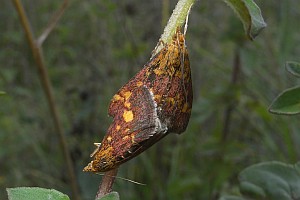 Nach Heckford & Beavan (2021) geht die Meldung zu Nepeta racemosa auf Ford (1949) zurück: "Ford (1949: 27–28), [...] lists the foodplants of P. aurata as: ‘On flowers of Nepeta cataria, in a slight web; leaves of garden mint, flowers of Origanum vulgare, Nepeta mussini [sic] [= Nepeta racemosa Lam.], Mentha rotundifolia (= Mentha x rotundifolia (L.) Huds.)’ and gives ‘(S. W.)’ [S. Wakely] as the source."