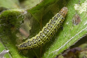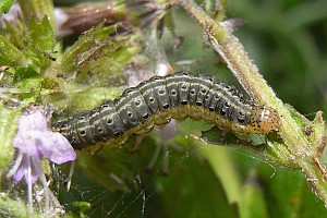 - [Lamiaceae:] Mentha x piperita (Pfefferminze) [Raupenfund von Tina Schulz in Rodenberg (Niedersachsen) - direkt neben unberührtem Oregano, s. oben]