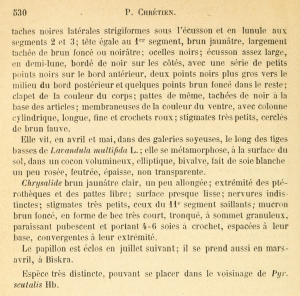 - Erstbeschreibung: Chrétien, P. (1911): Contribution à la connaissance des Lépidoptères du Nord de l'Afrique. — Annales de la Société entomologique de France 79 (4): 497-531.