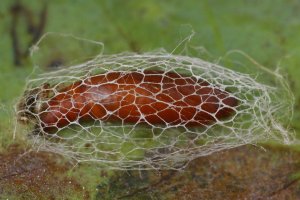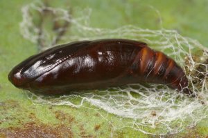 Slamka (2013: 76) musste noch schreiben: "Preimaginal stages are unknown." Doch kurz darauf erschien die Publikation von Budashkin (2014) in dem dieser u.a. über Raupenfunde dieser Art an Cerinthe minor auf der Krim berichtete. Die Raupen hatten mehrere obere Blätter zusammengesponnen und lebten darin im Versteck. Mit den hier gezeigten Raupenbildern konnte Vladimir Savchuk diesen Befund für die Krim bestätigen.