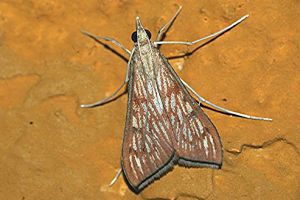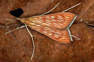 Die weiteren Angaben in Hosts sind sehr fraglich und können ohne Studium der Primärquellen nicht nachvollzogen werden: Duranta erecta aus Ostafrika (wo die Art natürlicherweise nicht vorkommt) und Duranta sp. ohne nähere Angabe aus der Pan-Tropis könnte ja noch sein, Reis (Oryza sativa) aus Bangladesch bezieht sich aber mit sehr hoher Wahrscheinlichkeit auf einen anderen Zünsler.