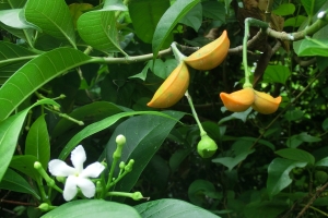 1-2: Windmühlenbusch (Tabernaemontana pandacaqui): Indonesien, Bali, Batubulan, 2020 (det. & fot.: Kersten Krause)