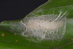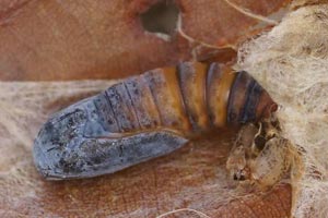 4: Kokon, Österreich, Steiermark, Graz, St. Peter, ca. 400 m, Waldweg, auf Rotbuche, leg. 4. Oktober 2021, verpuppt 15. Oktober 2021 (cult., det. & Foto: Horst Pichler)Forum