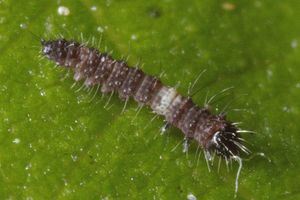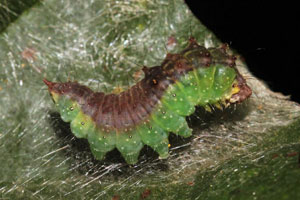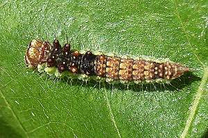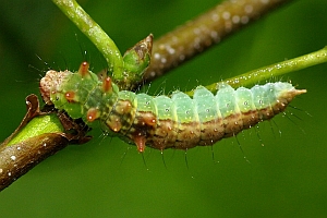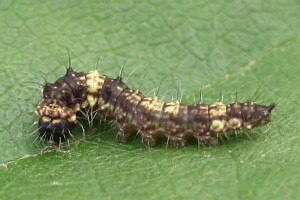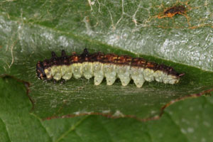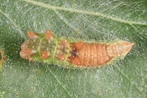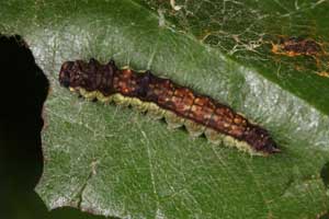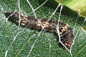13-14: Deutschland, Bayern, Unterallgäu, Waldweg bei Dickenreishausen, in lockerem Gespinst auf Alnus glutinosa Blatt, ca. 640 m, 4. September 2014 (Studiofotos & det. nach Falterschlupf: Peter Schmidt)Forum