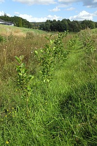 3-4: Regenrückhaltebecken im Neubaugebiet mit jungen Erlen, hier Schwarz-Erlen (Alnus glutinosa): Deutschland, Niedersachsen, Ortsrand Rodenberg, 50 m, 24. August 2014 (Fotos: Tina Schulz)Forum